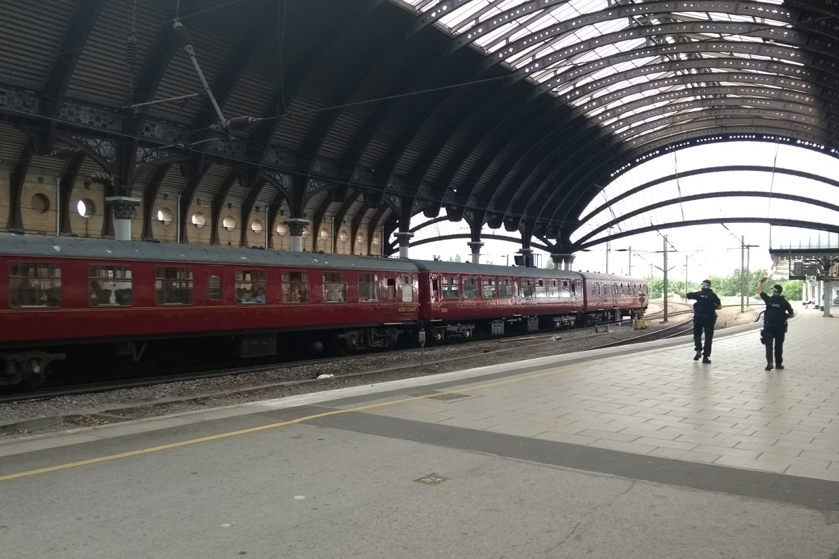 I’ve been trying to put my finger on what exactly is interesting about this juxtaposition. I kept mulling over the out-of-placeness of deadly weaponry toted through York railway station. But I was getting the wrong end of the stick – it was the Galatea that was out-of-place. The steam train was far more unexpected a sight than the Heckler and Kochs. It was a relic of the past steaming its way into a present in which heavily armed officers patrol a railway station in a small, peaceful, rural city.